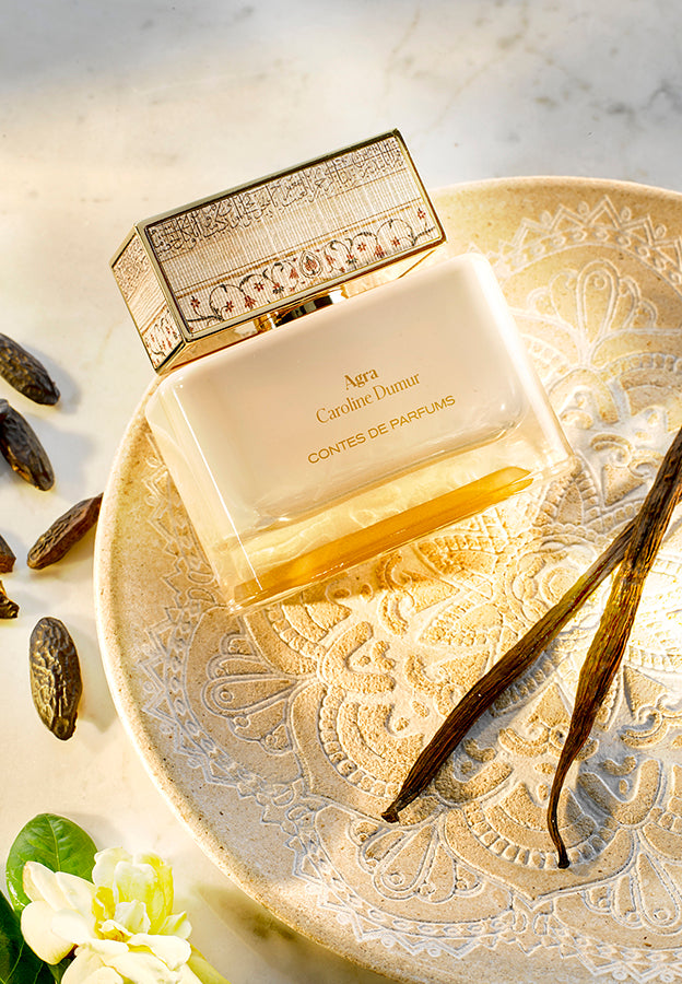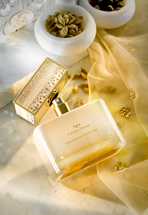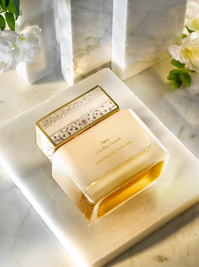 Created by perfumer Caroline Dumur, Agra opens with fresh top notes of Guatemalan Cardamom Oil, Ginger Oil, and Tunisian Neroli Oil, then unfolds into an opulent floral heart of Ylang Ylang alongside Jasmine Sambac Absolute and Indian Tuberose Absolute, symbols of love in Indian culture, before settling into a warm dry-down of Tonka Bean Absolute and Vanilla Bean Extract reflecting the city's warmth.