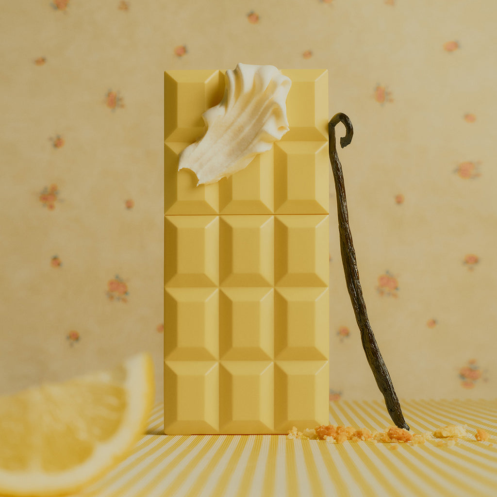 Sweet Tooth Lemon Pie is a radiant, comforting whirl of citrus and buttery graham cracker pie crust, reminiscent of your favourite fresh-baked dessert. Housed in a bottle playfully shaped like a chocolate bar and kissed with a sunny pastel hue, the fragrance evokes the nostalgic charm of a vintage country kitchen.